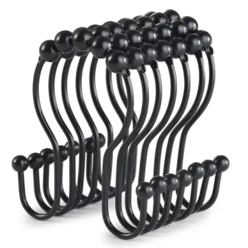 The meticulously crafted double shower hooks provide an extra layer of stability by holding both your shower curtain and liner securely in place. Say goodbye to the hassle of re-hanging dropped hooks as the unique design prevents them from slipping off the rod, making your shower experience stress-free. With an elegant black finish, these hooks add a touch of modern sophistication to any bathroom, classic or contemporary. You'll appreciate how they elevate the overall ambiance of your space while remaining stylishly understated.