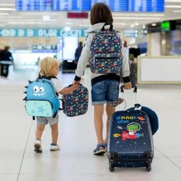 Goplus 5 Piece Kid’s Luggage Set, 16” Carry on Suitcase w/13” Backpack, Neck Pillow, Hardside Spinner Toddler Luggage, Travel Rolling Suitcase for Boys Girls Gifts (Navy, Space Dino)
