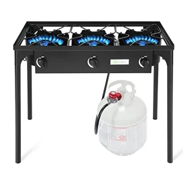 Show moreDiscover the perfect companion for your outdoor cooking adventures with the Goplus Outdoor Camping Stove. This versatile propane camp stove is designed to deliver exceptional performance, allowing you to utilize all 3 burners simultaneously with an impressive total output of 225,000 BTU. Crafted from durable cast iron, this stove guarantees a sturdy and reliable construction that can withstand the rigors of various outdoor settings, be it camping under the stars, a lively backyard BBQ, or tailgating before the big game. With this stove, you'll enjoy the convenience of cooking multiple dishes at once with ease.