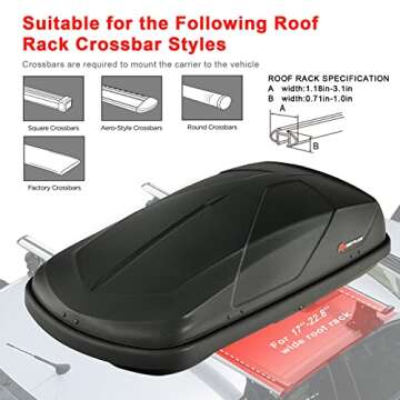 Goplus Rooftop Cargo Carrier Hard Shell, 14 Cubic Feet Waterproof Car Roof Cargo Carrier w/Dual Side Opening, Security Key, 165LBS Capacity, for 17” to 22.8” Wide Crossbar Rack, Vehicle Cargo Box