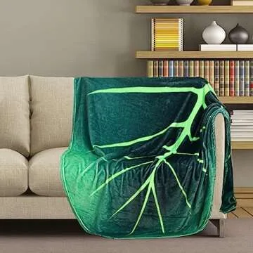 Show more Introducing the ultimate blend of comfort and unique design: the Leaf Shaped Blanket. This stunning piece is not just a functional item to keep you cozy; it’s a remarkable statement decor that brings the beauty of nature indoors. Crafted with advanced digital printing technology, the vibrant green leaf design stands out, making it a captivating focal point in any room. Perfect for summer lounging or winter snuggling, this blanket offers warmth and comfort all year round.