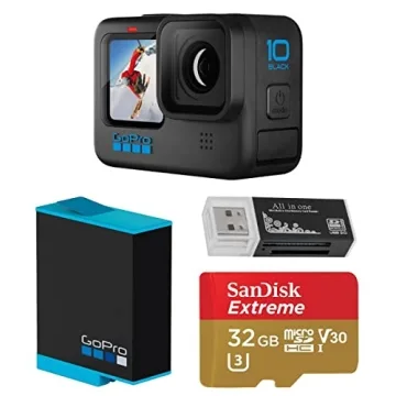 Show more Introducing the GoPro HERO10 Black, an exceptional waterproof action camera that redefines adventure photography and videography. Featuring stunning 5.3K60 video resolution and stellar 4K streaming capabilities, the HERO10 Black brings your experiences to life with unparalleled clarity and smoothness. This essential bundle includes everything you need for a day of exploration: a rechargeable battery, a 32GB microSD card, a versatile green extreme multi-card reader, and essential mounting accessories for seamless integration into your adventures. Its built-in mounting options and compatibility with GoPro Mods empower creators to personalize their work like never before.