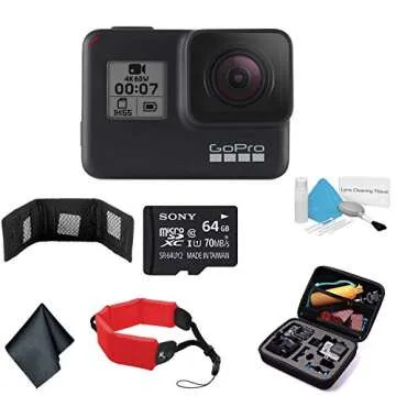 Show more The GoPro HERO7 Black is the ultimate action camera that makes capturing your adventures more exciting than ever before. This exceptional bundle includes a 64GB UHS-I microSDHC Memory Card, a convenient Memory Card Wallet, a Red Floating Wrist Strap for those water-based escapades, a durable Hard Shell Carrying Case with compartments to keep all your gear organized, and a Microfiber Cleaning Cloth to ensure your shots remain crystal clear.