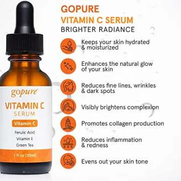 goPure Vitamin C Serum for Face - Radiance-Boosting Face Serum for Glowing Skin, Formulated with Antioxidants Vitamin C and Ferulic Acid to Support more Even-Toned and Brighter-Looking Skin - 1 fl oz
