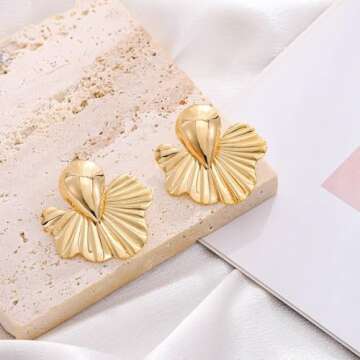 Goresory Gold Earrings Flower Drop Earrings Irregualr Geometric Earring Fashion Jewelry for Women (Gold)