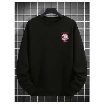 GORGLITTER Men's Letter Crane Graphic Crewneck Pullover Top Long Sleeve Drop Shoulder Sweatshirt Black Medium