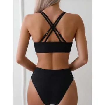 GORGLITTER Women's 2 Piece Bikini Set Criss Cross Cut Out Swimsuits High Waisted Bottom Bathing Suit Solid Black Medium