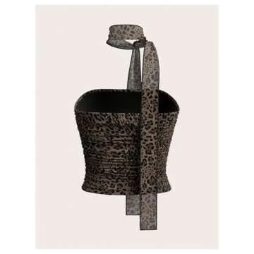 GORGLITTER Women's 2 Piece Leopard Cheetah Ruched Y2k Tube Top Strapless Bandeau with Neck Band