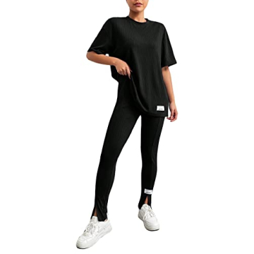 Show moreIntroducing the GORGLITTER Women's 2 Piece Outfits Letter Patched Half Sleeve T-Shirt and Split Leggings Set in classic black—a stunning combination of style, comfort, and functionality tailored for the modern active woman. This two-piece set stands out with its slight stretch fabric that is not only soft against your skin but also provides the versatility needed for various activities. Whether you’re powering through a vigorous yoga class, hitting the gym for an intense workout, or enjoying a leisurely stroll in the park, this outfit ensures you look chic while feeling incredibly comfortable.