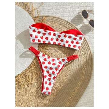Show moreIntroducing the GORGLITTER Women’s 2 Piece Strawberry Bikini Set – a captivating swimwear choice that combines style, comfort, and functionality! This adorable red and white bandeau bikini features a delightful fruit print that truly embodies the essence of summer fun. Crafted from highly stretchy, soft, and skin-friendly fabric, this two-piece set is not only quick-drying but also perfect for any water activity. Whether you're lounging by the pool, enjoying a beach day, or splashing in the waves, you’ll look and feel fabulous in this charming swimsuit.