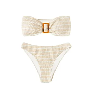 Show more Unleash your inner goddess this summer with the exquisite GORGLITTER Women's 2 Piece Striped Swimsuit, perfect for beach lovers and sun seekers alike. Crafted with an exquisite eye for detail, this stunning bandeau bikini set combines comfort, style, and playfulness. The tasteful and subtle stripe design paired with a soft, lightweight, and breathable fabric ensures that you look chic while feeling great. Whether you're lounging under the sun or flirting with the waves, this swimsuit promises to fit snugly and securely, thanks to its quality craftsmanship.