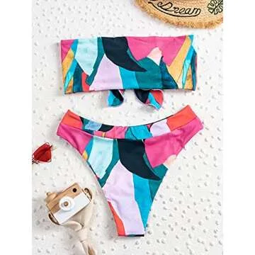 Show moreIntroducing the GORGLITTER Women's Bandeau Swimsuit Strapless Graphic Tie Front Tops High Waisted Bikini Set—a must-have for every sun-loving fashionista! Dive into summer confidently with this stunning 3-piece set that features a vibrant and colorful graphic print designed to make you stand out. Crafted from a high-stretch fabric, it’s not only durable but also incredibly soft, providing you with the comfort you deserve while lounging poolside or frolicking on the beach. The strapless bandeau top is designed for ease and elegance, ensuring a secure fit that flatters your figure beautifully. To complete the look, the high-waisted bottom not only elongates your legs but also offers that perfect balance of coverage—ideal for all body types.