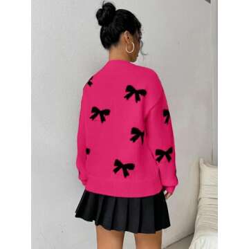 GORGLITTER Women's Bow Sweater Long Sleeve Crew Neck Vintage Y2k Knitted Sweater