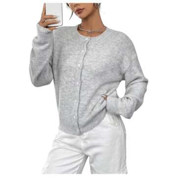 GORGLITTER Women's Button Up Knit Cardigan Open Front Fall Trendy 2024 Cute Long Sleeve Sweater Grey Medium