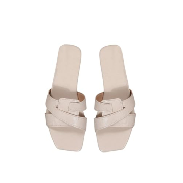 GORGLITTER Women's Cross Strappy Flat Sandals Colorblock Twist Band Slide Sandals Summer Open Toe Slides Slippers Beige 7