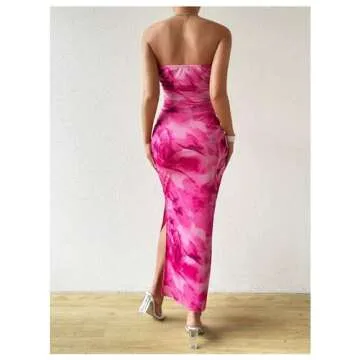Show moreStep into elegance and style with the GORGLITTER Women's Floral Strapless Bodycon Dress, a stunning addition to your wardrobe perfect for any occasion! Crafted from a premium polyester blend, this lightweight maxi dress ensures comfort and flexibility, making it an ideal choice for the summer months. Its vibrant hot pink color and exquisite floral design will undoubtedly turn heads wherever you go. The strapless, backless cut enhances your silhouette, while the chic thigh slit adds a playful touch of allure—perfect for both casual outings and festive celebrations.