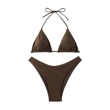 Show moreStep up your swimwear game with the GORGLITTER Women's High Cut Thong Swimsuit, an exquisite halter triangle tie-back bikini set that marries fashion with functionality. Crafted with a blend of 80% Polyamide and 20% Elastane, this bikini offers an exceptional stretch for a comfy yet alluring fit, perfect for those sunny beach days and summer vacations. The chic coffee brown color not only complements a variety of skin tones but also promises to enhance your summer glow. No matter where you wear it, this set is designed to make you feel confident and fabulous! Less