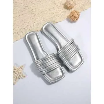 GORGLITTER Women's Metallic Flat Sandals - Stylish & Comfortable Slide Sandals