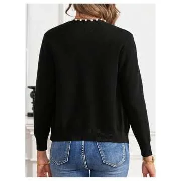 GORGLITTER Women's Pearl Beaded Open Front Cardigan Sweaters Long Sleeve Knit Cardigans Black X-Large