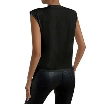 GORGLITTER Women's Pearls Beaded Elegant Shirts Casual Sleeveless Shoulder Pad Tee Top Blouse T-Shirt Black Large