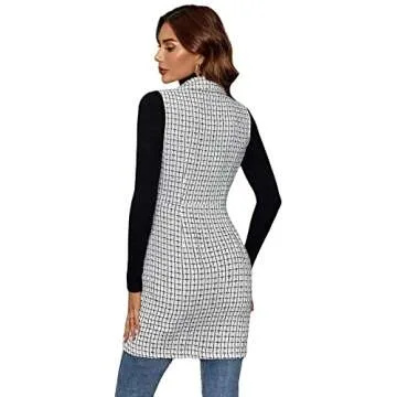 Show moreIntroducing the **GORGLITTER Women's Plaid Sleeveless Long Vest Cardigan**, a standout piece designed for the modern woman who values both style and comfort. This versatile cardigan boasts a chic plaid design that effortlessly elevates any outfit. Crafted from a lightweight, stretchy fabric that feels great against your skin, it provides unparalleled comfort whether you’re at the office or out on the town. The double-breasted front and stylish lapel collar ensure an elegant silhouette, while the open front design enhances its easy-to-wear appeal. With convenient side pockets, it blends functionality with fashion, making it a perfect addition to your wardrobe for the upcoming fall season.