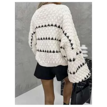 GORGLITTER Women's Striped Oversized Loose Sweater Cable Knit Long Sleeve Crew Neck Fall Winter Fahion Outfits 2024 White Striped Large