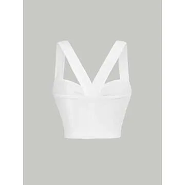 GORGLITTER Women's Twist Front Sleeveless Cami Crop Top Strappy Slim Fit Tank Top White Small