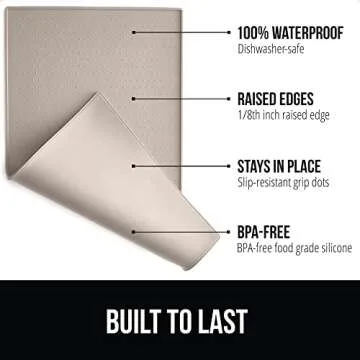 GORILLA GRIP 100% Waterproof Raised Edge BPA Free Silicone Pet Feeding Mat, Dog Cat Food Mats Contain Spills Protects Floors, Placemats for Cats and Dogs Water Bowl, Pets Accessories 16x10, Beige