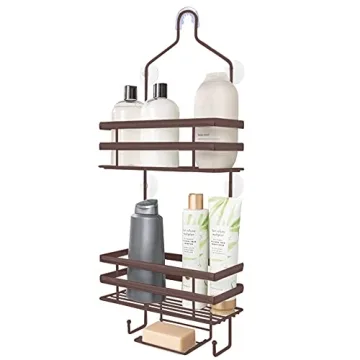 Show moreTransform your bathroom experience with the Gorilla Grip Anti-Swing Oversized Shower Caddy. This rust-resistant organizer is engineered for durability, boasting the ability to hold up to 11 lbs of your favorite shampoos, conditioners, body washes, and soap. Its elegant design, featuring a stylish bronze finish and a chic bamboo aesthetic, adds a touch of sophistication to any bathroom. With surprisingly ample space across its 3 spacious shelves, this caddy is perfect for accommodating tall bottles, ensuring all your shower essentials are easily accessible and neatly organized.