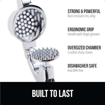 Gorilla Grip Garlic Press and Peel Set, Heavy Duty Mincer Tool, Easily Mince and Crush Garlics, Ginger, Nuts, Seeds, Large Ergonomic Handle, Peeler Included for Peeling Cloves, Kitchen Gadgets, Black