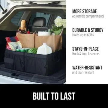 GORILLA GRIP Large Capacity Sturdy Trunk Storage Organizer, Slip and Water Resistant Collapsible Organization Container for Car Sedan or SUV, Multi Compartment Container Box Vehicle Accessories, Black