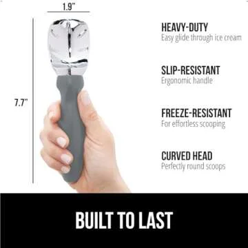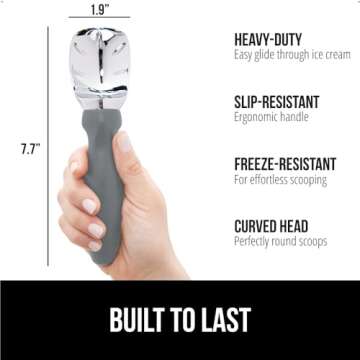 GORILLA GRIP Large, Comfortable Handle, Heavy Duty Ice Cream Scoop, Professional Grade Scooper, Get Perfect Shape Scoops, Great for Spooning Frozen Hard Gelato and Sorbet, Cookie Dough, Melon, Gray
