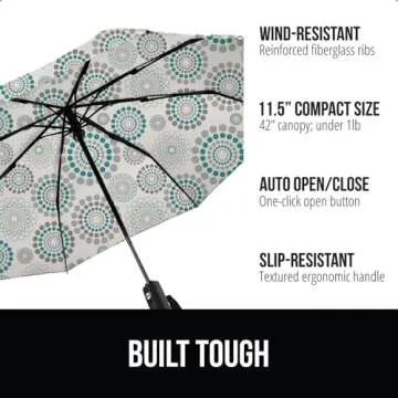 Gorilla Grip Windproof Compact Stick Umbrella for Rain, One-Click Automatic Open and Close, Strong Reinforced Fiberglass Ribs, Easily Collapsible, Lightweight Portable Umbrellas for Travel, Spiral
