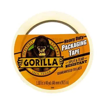 Show more If you're looking for a reliable and robust solution for all your packing needs, look no further than the Gorilla Heavy Duty Large Core Packing Tape. With its impressive dimensions of 1.88 inches wide and 40 yards long, this tape is engineered to handle everything from moving and shipping to long-term storage. What sets it apart is its superior extra thick (3.4 mils) construction, making it not only tough but also incredibly durable against wear and tear. Whether you're wrapping fragile items for a move or sealing boxes for shipping, Gorilla's tape offers the strength and reliability you require.