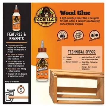What truly sets Gorilla Wood Glue apart is its versatile nature. This water-based adhesive is not just strong but also demonstrates phenomenal water resistance, making it perfect for both indoor and outdoor usage. Regardless of whether your project involves hardwoods, softwoods, or natural wood composites, this glue adapts beautifully and ensures an excellent bond. The user-friendly formula allows for easy cleanup with just a damp cloth, highlighting its convenience for both seasoned craftsmen and novice DIYers.