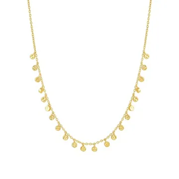 Show moreIntroducing the Gorjana Women's Chloe Mini Strand Necklace, a stunning piece of jewelry that encapsulates elegance and versatility. Adorned with tiny irregular 1/8 inch disc charms, this necklace is beautifully set on a fine 16-inch long strand chain. Designed for the modern woman, it features a secure spring ring closure that ensures a comfortable fit for all-day wear. The 18k gold-plated brass gives it an enduring shine, making it a wonderful addition to your jewelry collection that's perfect for layering or wearing alone, providing a delicate touch that enhances any outfit.