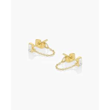 Show moreIntroducing Gorjana's exquisite Delicate Studs with Baguette White Crystal, a pair of earrings that perfectly blend minimalism with elegance. These studs, measuring 3/16 by 1/8 inch, are not only charming but also come with a delicate dangle chain that boasts a total drop of 1/2 inch, adding an airy luxurious flare to any outfit. Immerse yourself in the petite treasure aesthetic — these huggies, equipped with a secure post back closure, radiate eye-catching sparkle, making them an ideal accessory for any occasion.