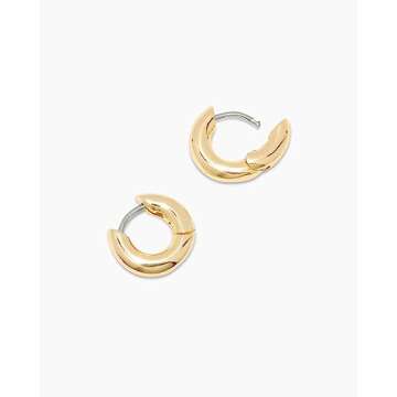 gorjana Women’s Lou Huggie Earrings, Small High Shine Chunky Hoops, Stainless Steel Post, 18K Gold Plated