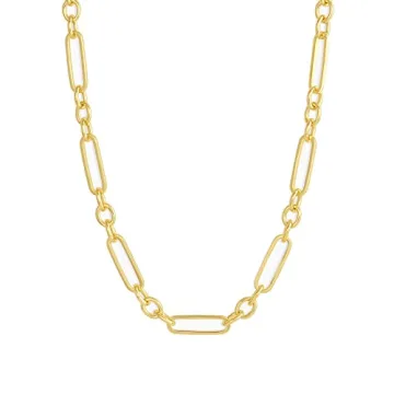 Show moreIntroducing the gorjana Women’s Reed Necklace, a stunning addition to any jewelry collection, expertly crafted to elevate your style. This statement link chain is designed to impress, featuring a chunky link design that spans a total length of 20 inches. Each chain link is meticulously measured at 3/16" by 9/16", making it the perfect piece for layering with choker necklaces and other gold accessories. What truly sets this piece apart is its 18K gold plating, offering a luxurious finish without sacrificing comfort. Lightweight yet durable, this necklace is designed to withstand the trials of daily wear, serving as a vibrant accessory that complements any outfit.