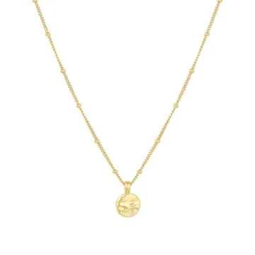 Show moreIntroducing the exquisite Coin Charm Necklace from Gorjana, a perfect blend of playful elegance and dainty design. This stunning piece features a charming 5/16 inch shimmering charm adorned with a unique wave texture on the back, evoking the soothing essence of the ocean. Elegantly paired with a 16 inch link chain that boasts eye-catching golden orb accents, this necklace is engineered to effortlessly augment your wardrobe, transitioning seamlessly from casual daywear to finer evening outfits.