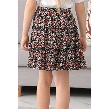 GORLYA Girls Ruffle Floral Boho Flowy Cute Tiered Short Mini Skater Skirts 4-14T