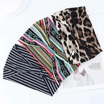 GORTIN Boho Headbands Leopard Hair Bands Knoted Turban Stretch Twist Head Wraps Stripe Cloth for Women and Girls 3 Pcs (Boho)