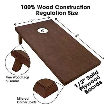 GoSports 4 ft x 2 ft Regulation Size Wooden Cornhole Boards Set with Dark Brown Varnish - Includes Carrying Case and Bean Bags (Choose Your Colors) Over 100 Color Combinations