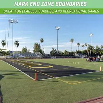 SET OF FOUR MARKERS: Includes 4 regulation size fluorescent orange pylon markers - great for official league games and recreational football