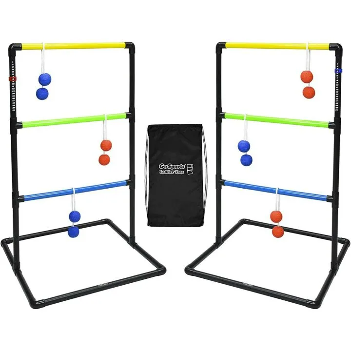 Show moreIntroducing the GoSports Pro Grade Ladder Toss Game, a revamped classic designed with modern aesthetics and robust durability in mind. This ladder toss set stands out with its ultra-sturdy reinforced PVC construction, ensuring it can withstand the excitement and enthusiasm during your social events. The complete set includes two professionally graded ladder toss targets with convenient score trackers, six soft rubber bolos (three red and three blue), a carrying case for easy transport, and a detailed rule book to get everyone started.