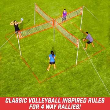 GoSports Slam X Huge 21 ft x 21 ft 4 Way Volleyball Game Set - Ultimate Backyard & Beach Game For Kids And Adults