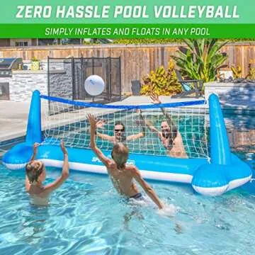 Show moreTransform your summer pool days into unforgettable memories with the GoSports Splash Net Air Inflatable Pool Volleyball Game! Designed with fun and durability in mind, this game comes complete with a floating net, two water volleyballs, and a ball pump, ensuring you have everything you need for a day of competitive play. Measuring a generous 9.5 feet wide, it's perfect for players of all ages and skill levels. The innovative Rapid Valve technology allows for a swift inflation time of just 2 minutes, making setup a breeze. Simply inflate, set up, and dive into hours of enjoyment.