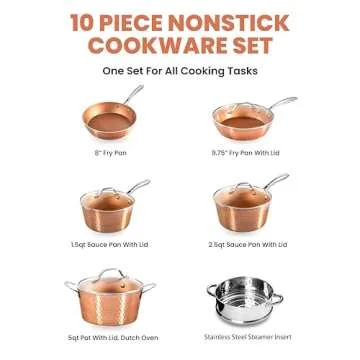 Gotham Steel Hammered Copper 10 Pc Pots and Pans Set Non Stick Cookware Set, Non Toxic Ceramic Cookware Set, Kitchen Cookware Sets with Induction Cookware, Pot and Pan Set, Oven/Dishwasher Safe