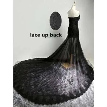 Gothic Vintage Wedding Dress for Women Long Beaded Lace Mermaid Tulle Strapless Bridal Gowns with Train Black 2