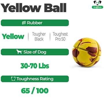Show moreThe Goughnuts Virtually Indestructible Ball is not just a toy; it's a lifeline to endless fun and safe play for your furry best friend! Crafted from the same durable rubber used in astronaut equipment, this interactive chew toy is designed to withstand the energetic play of even the most aggressive chewers. Sized perfectly for dogs weighing between 30 to 70 pounds, this 3-inch diameter ball encourages active play while ensuring safety. With its grooved design, it promotes airflow, further enhancing the safety features of this product, allowing your dog to breathe easily while playing fetch.